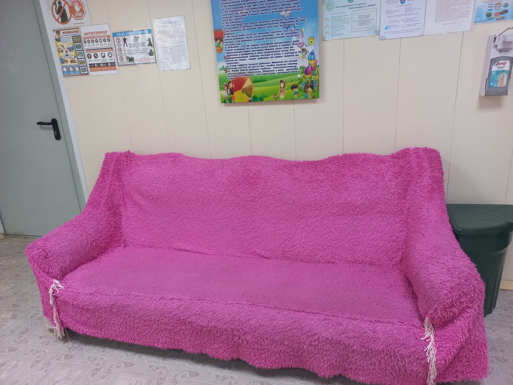 Он оснащен необходимым оборудованием в соответствии с санитарными требованиями: в медицинском кабинете имеется ростомер, весы, рабочий стол медсестры, кушетка, шкаф для хранения документации; в изоляторе — одно койко-место, детский стульчик; в процедурном кабинете — холодильник для хранения вакцины, шкаф для медикаментов, 2 процедурных стола, кварцевая лампа.